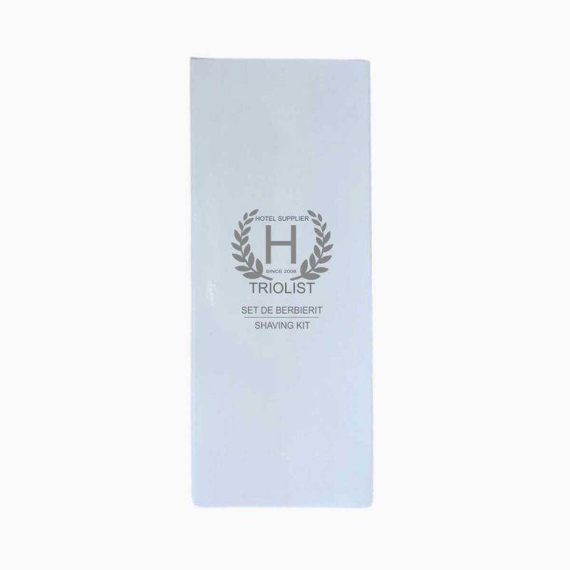 Set de bărbierit in cutie alba de carton pentru oaspeții hotelurilor, pentru un bărbierit confortabil și neted.